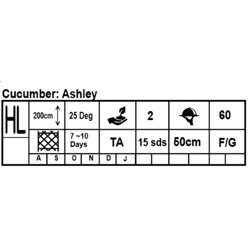 Well-known heirloom open pollinated cucumber that has been grown for years in most vegetable gardens, and excellent for slicing. Ashley is an early variety with is a prolific producer of medium size 30cm fruits that are darker than other cultivars. Resistant to downy mildew and other problems normally caused by humid conditions. Also grows well in containers.