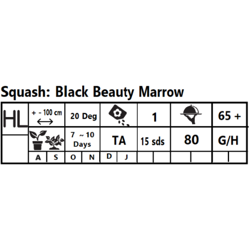 Italian Heirloom, summer squash, with beautiful black-green to almost black glossy fruits at maturity. A garden standard variety that is very early, prolific, vigorous and exceedingly popular. Its bush habit makes it ideal for smaller gardens. Pick often and your marrow bush will keep on producing. Today Black Beauty can still be found in commerce, although over a 100 hybrids are dominating the market.